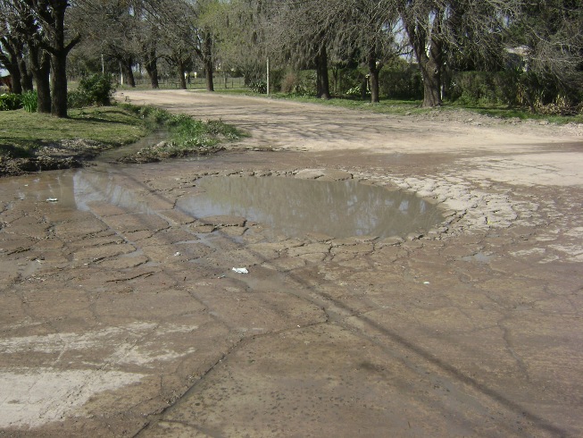 Nos preocupa ahora otro pozo del que también nos hemos ocupado en varias oportunidades, más que nada los días de lluvia, cuando el peligro se acrecienta ya que al quedar cubierto por el agua de lluvia, los que transitan, más aquellos que no tienen la posibilidad de conocer la zona, se encuentran ante el dilema que presenta el no saber qué profundidad tiene ese bache.